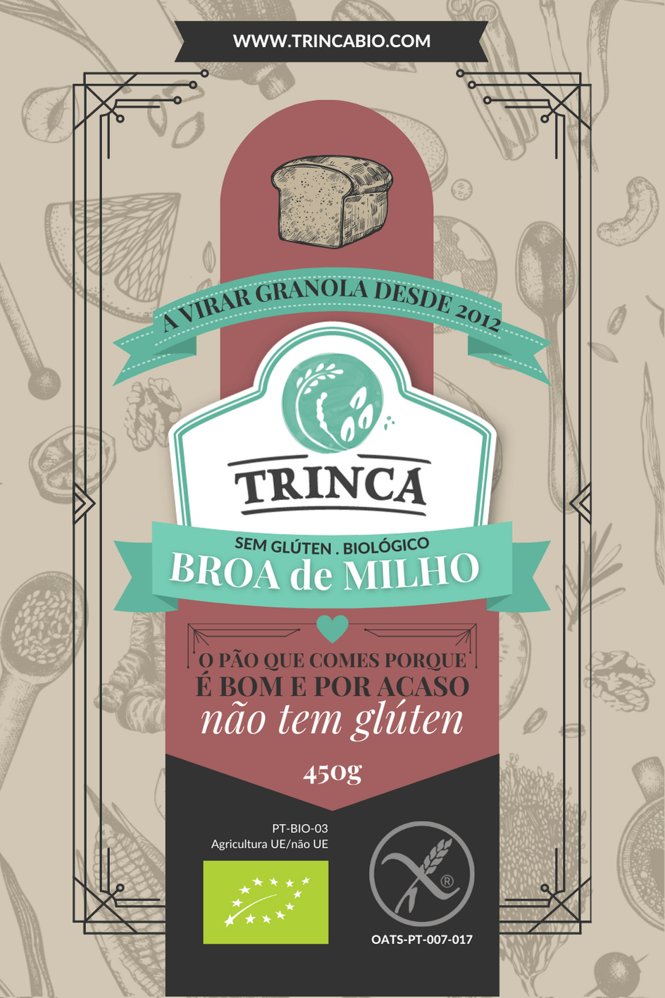 vegan · biológico · isento de glúten · Uma broa que sabe a milho e não a açúcar, como tantas que encontramos por aí. A prova de que deixar de comer trigo, não tem que vir com sacrifícios.