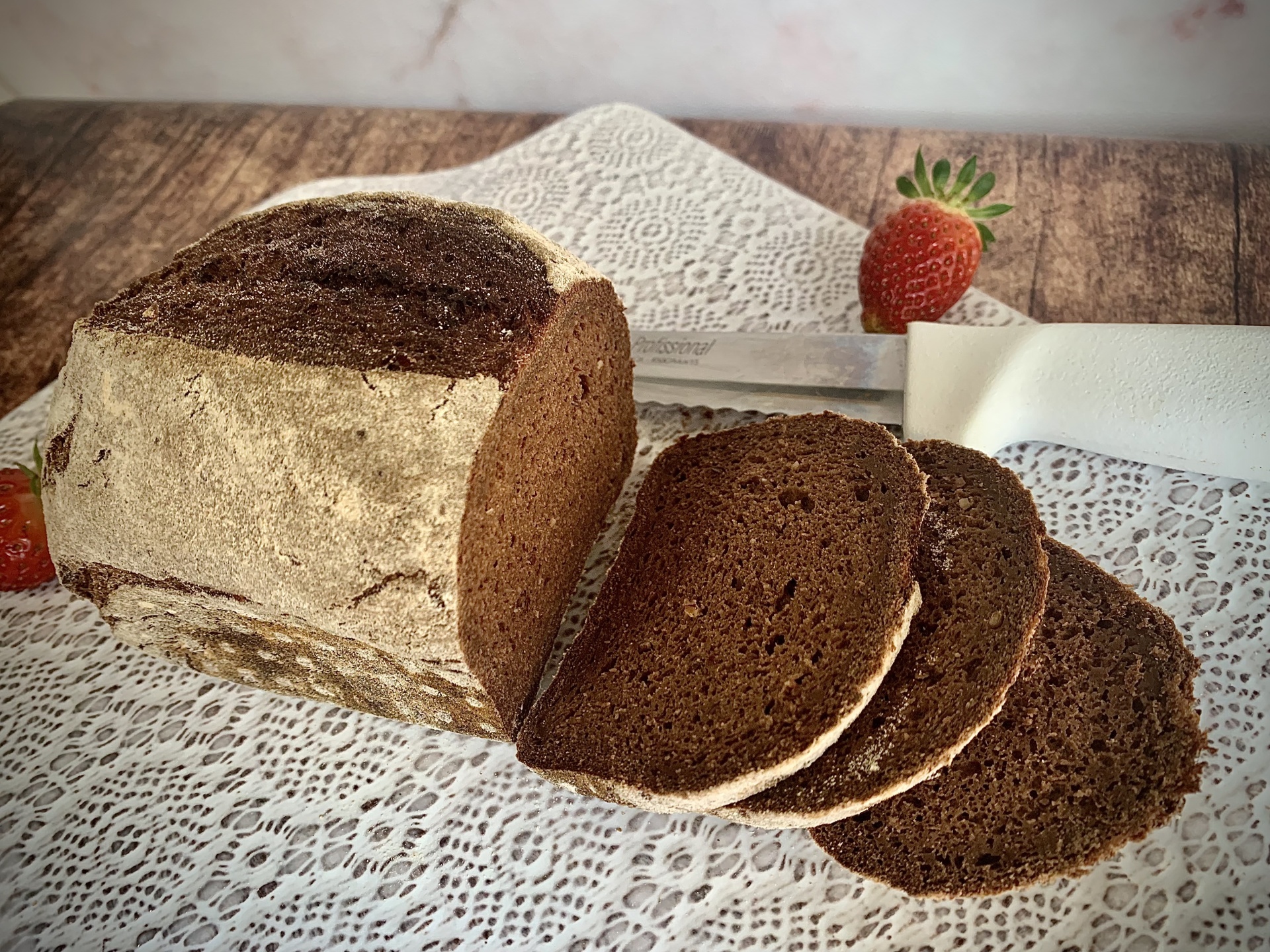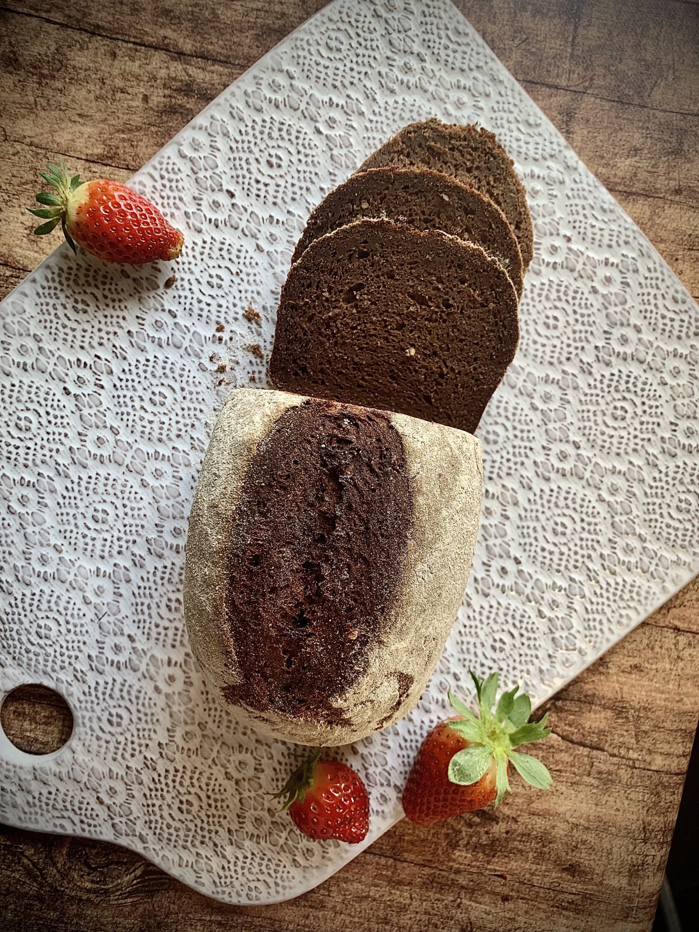 É um pão com bastante alfarroba e bem docinho, porque este ingrediente traz mesmo um sabor pecaminoso que sabe bem sem conduto. Terás dificuldades em não o comer todo de uma assentada, mesmo assim sem nada, fatia a fatia.