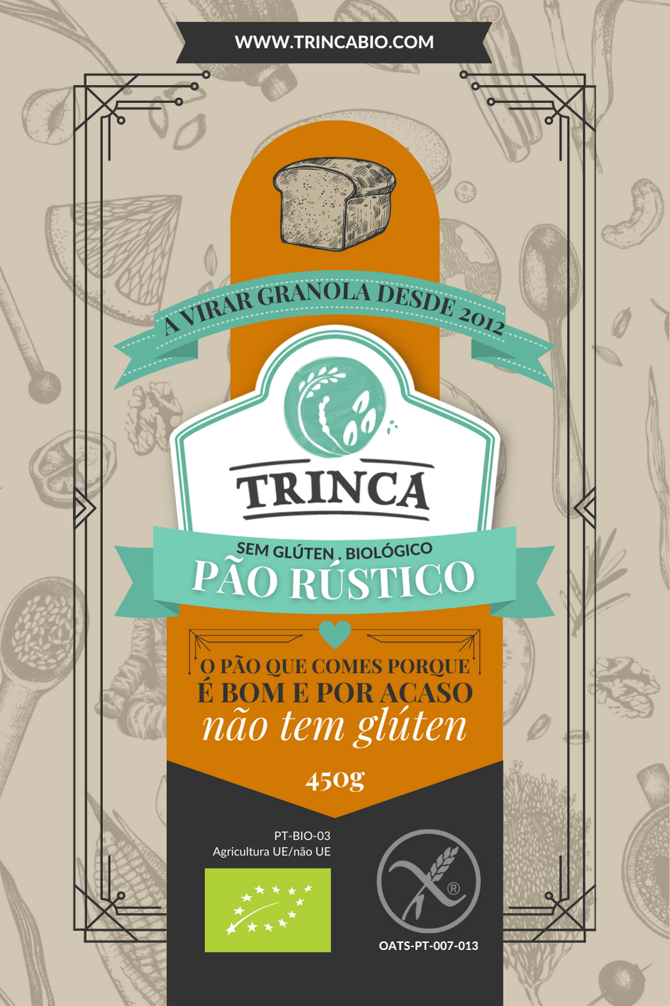 pão rústico BIO sem glúten - 450g